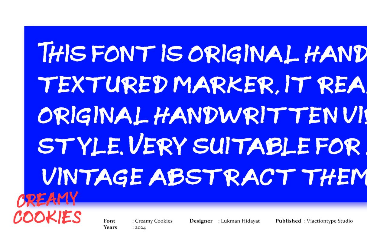 Introducing Creamy Cookies – a delectable handwritten marker font that adds a sprinkle of charm to your designs. With its playful strokes and delightful curves, this font exudes a sense of whimsy and creativity, reminiscent of handwritten notes on a cozy afternoon.