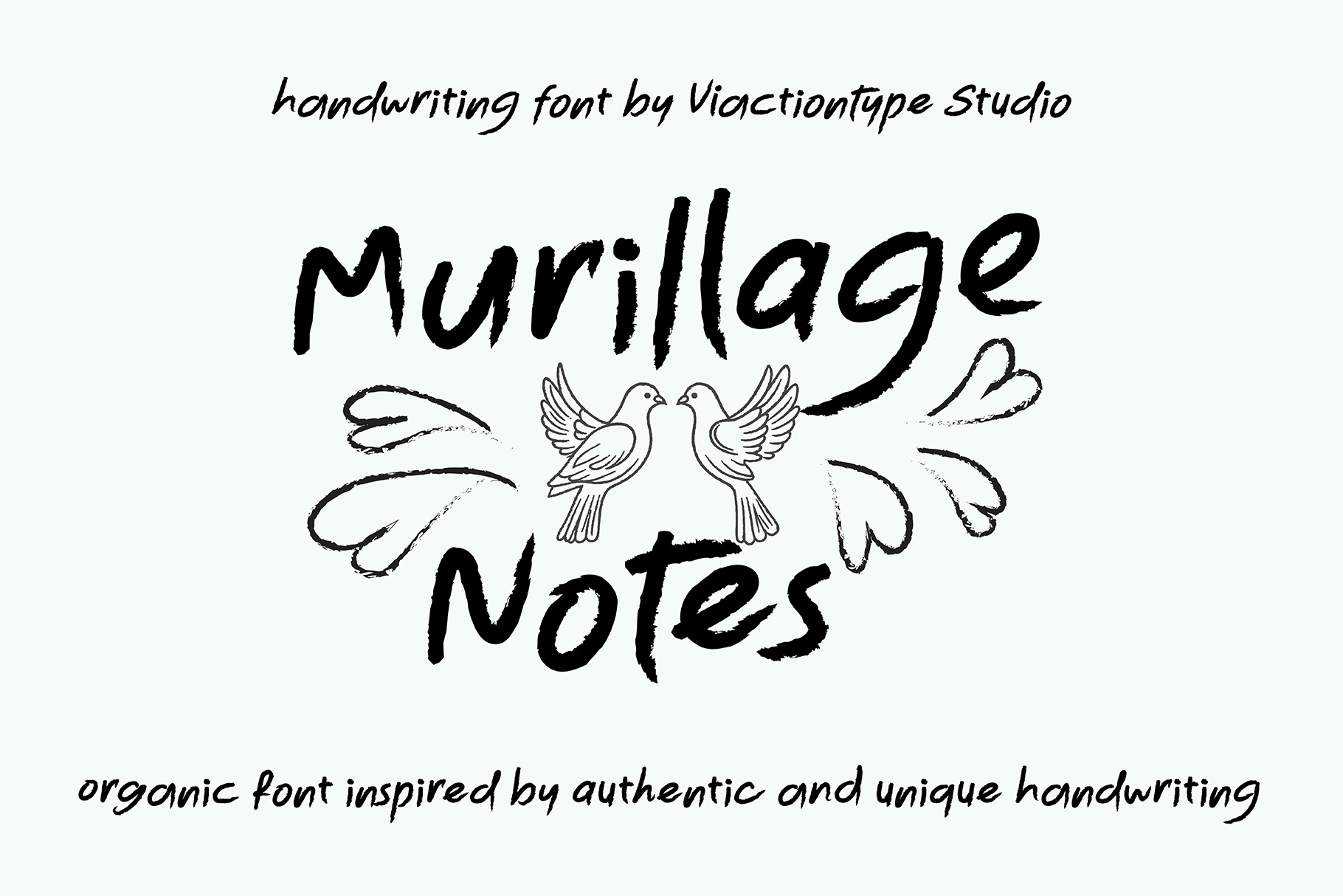 Designed with lively brush pressure and authentic stroke texture, Murillage Notes delivers a realistic handcrafted feel. Each letterform shows visible brush detail and organic variation, making your typography look personal, artistic, and premium rather than mechanical. The style feels free and fluid while maintaining refined structure—perfect for designs that aim to be both expressive and sophisticated.